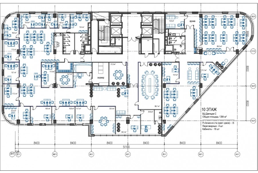 Аренда офиса 1384 м²