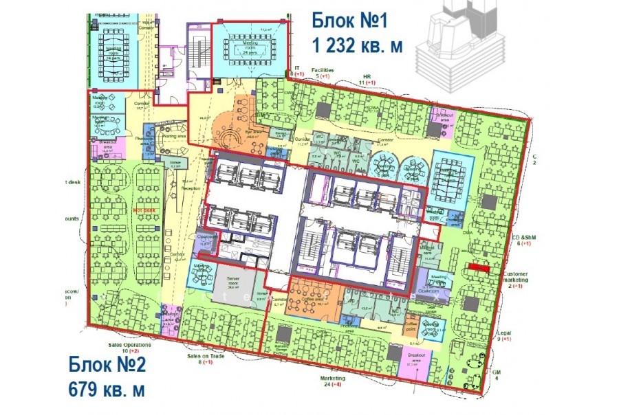 Аренда офиса 1232 м²