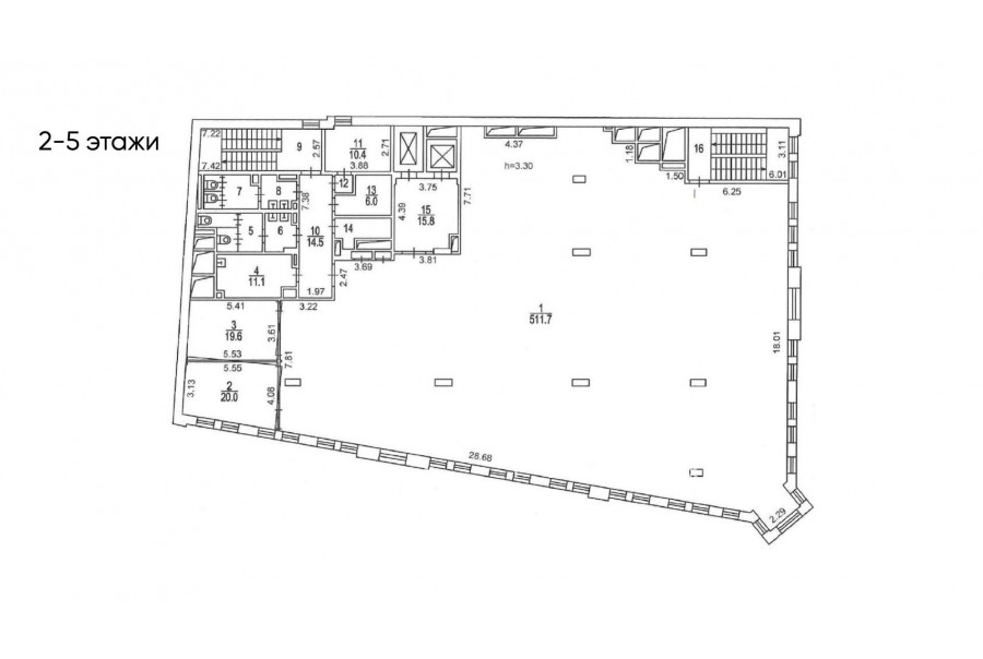 Характеристики 538 м² 3 - 5 этаж Готово к въезду