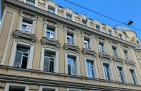 Старое здание, маленькая входная группа. Из плюсов - близко к метро.