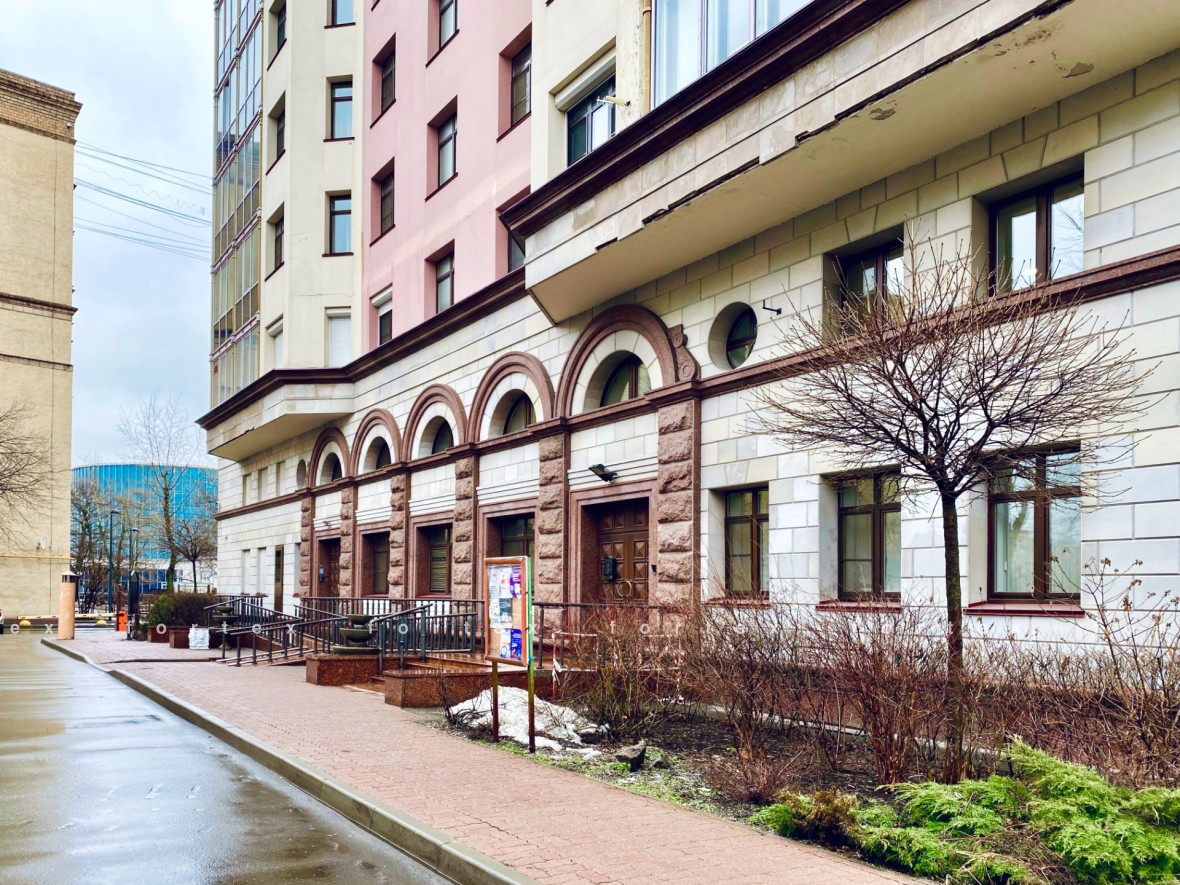 Жилой дом расположен в 5 мин пешком от станции метро Парк Победы. Удобно клиентам и сотрудникам